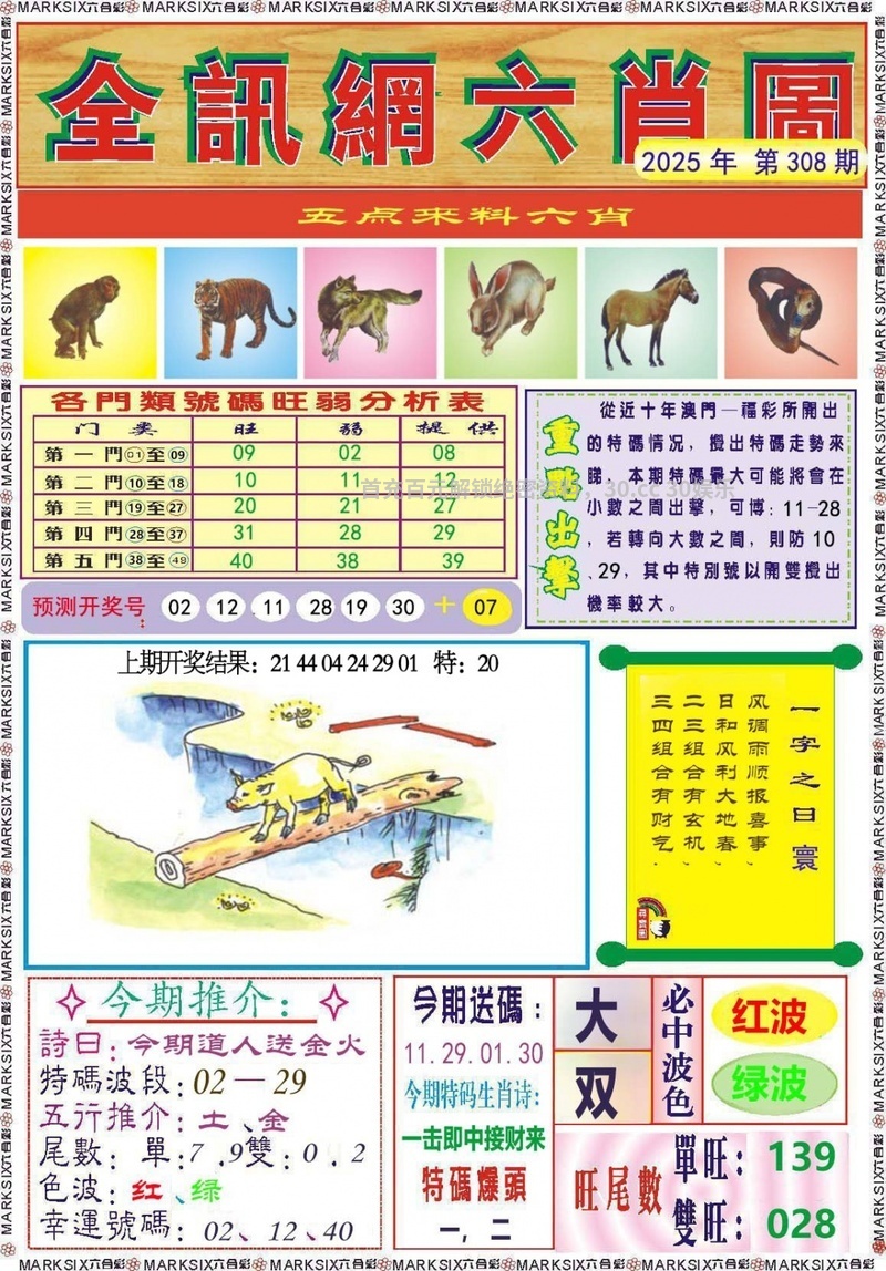 | 308期 | 7尾 | 牛 | 金 | 兔39 |