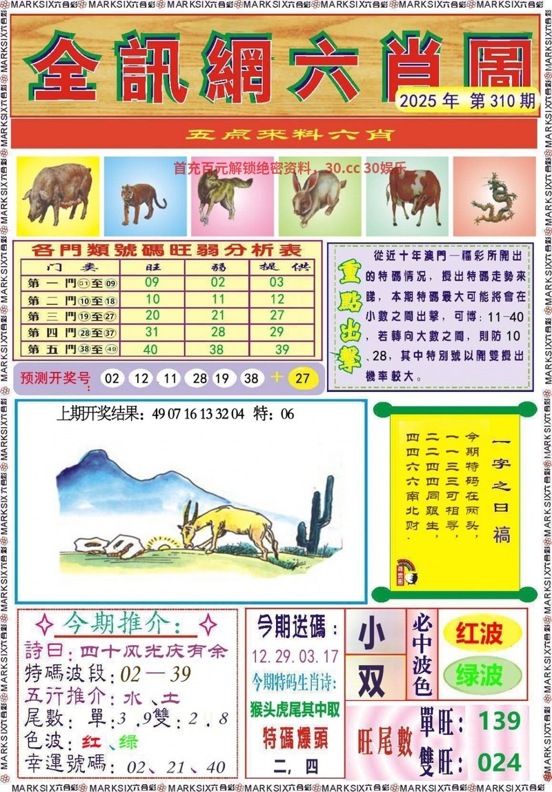 | 309期 | 0尾 | 马 | 水 | 鼠06 |