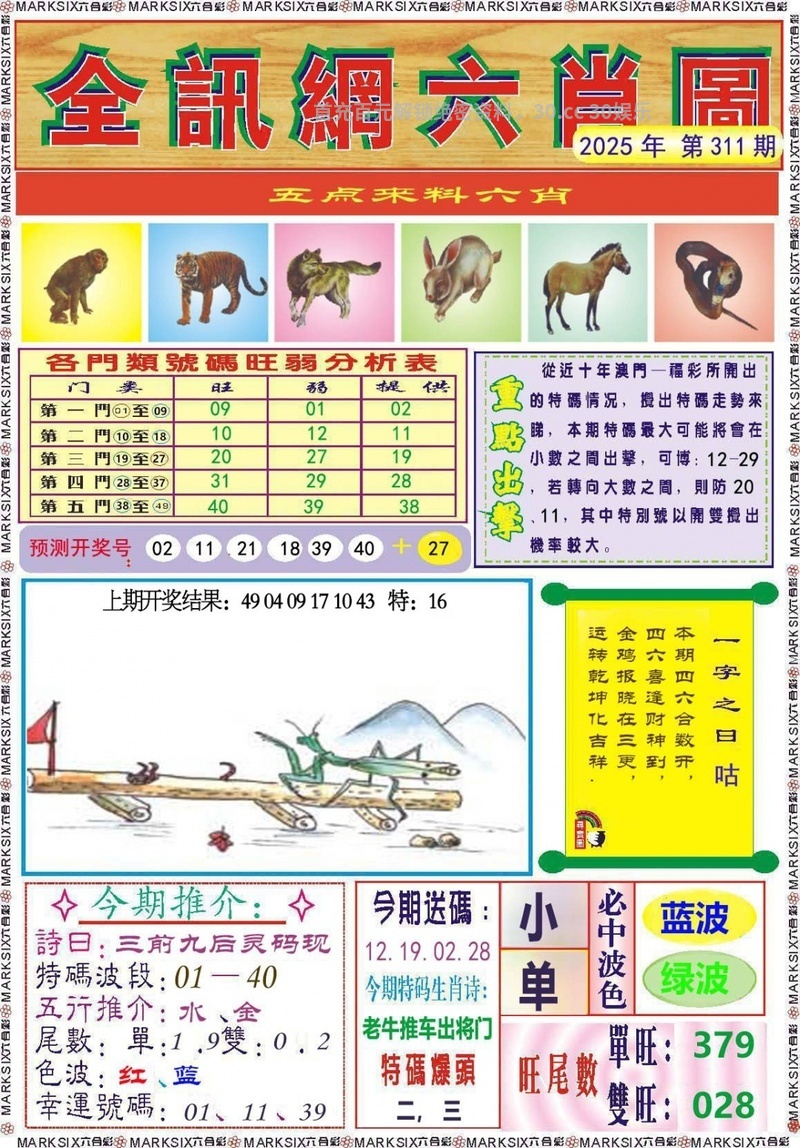 | 312期 | 9尾 | 猴 | 金 | 發00 |